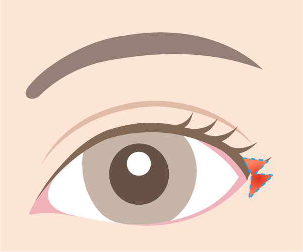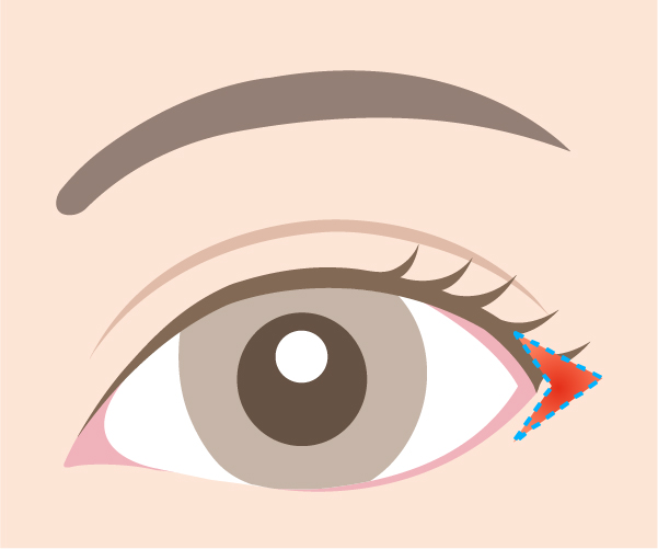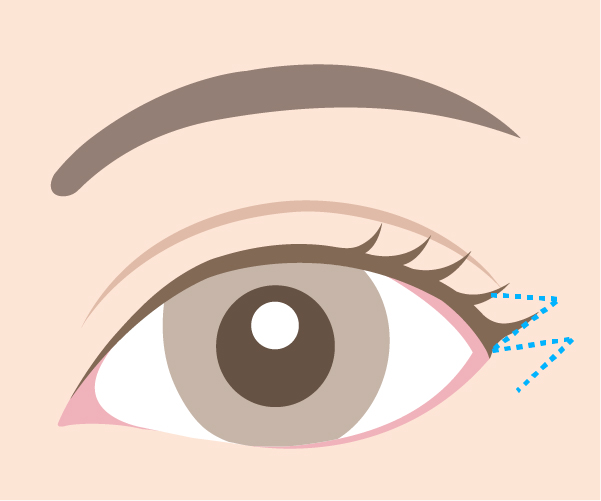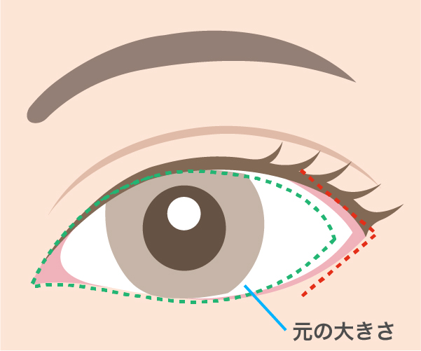 目はまぶたや皮膚で目尻側が覆われて、少し隠れていることがあります。この隠れ具合には個人差がありますが、目尻切開では、この隠れている部分を切開することで、目の見える範囲を横に広げ、白目や黒目を大きく見せる効果があります。