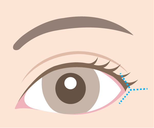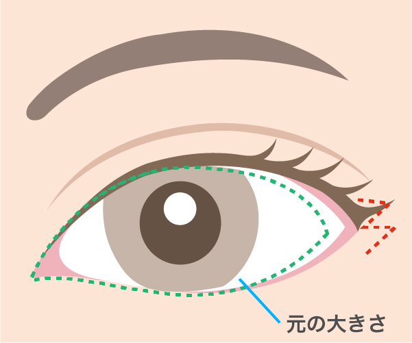 目尻を数mmほど切開し、目の横幅を広げるように形成します。